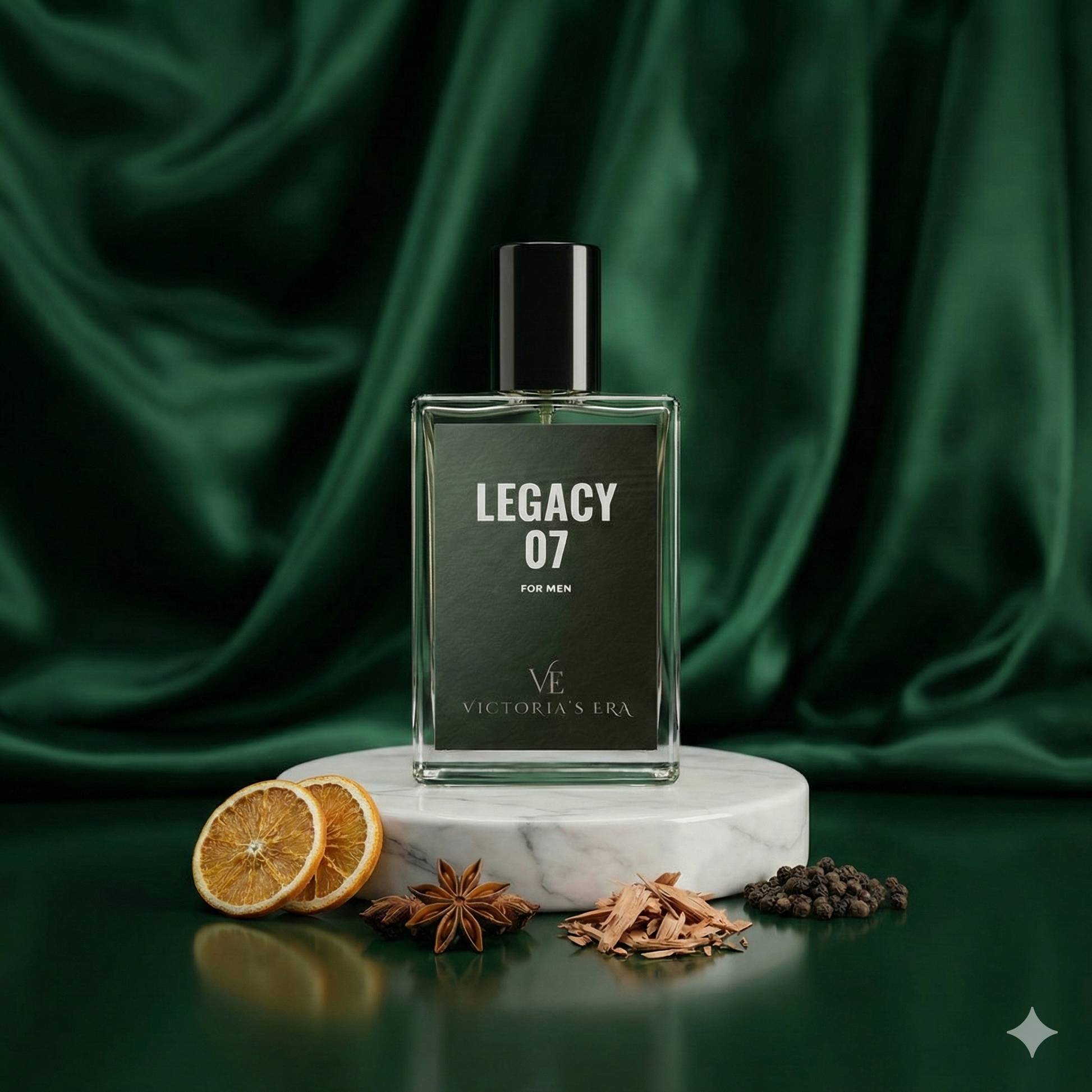 Description: A scent defined by confidence and timeless style. Legacy 07 opens with a sharp, aromatic freshness that evolves into a deep, masculine woody base. Crafted as a high-concentration Extrait de Parfum, it is designed for the man who values a strong, consistent presence. This is the scent of a leader.